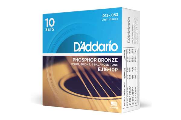 A great gift for the active player! Purchase 10 sets of strings and save!D'Addario's most popular acoustic guitar string set